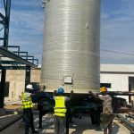 Colocação de parte dos depósitos da zona central da nave industrial, assim como na zona de armazenamento, e início das montagens das respetivas tubagens de ligação.